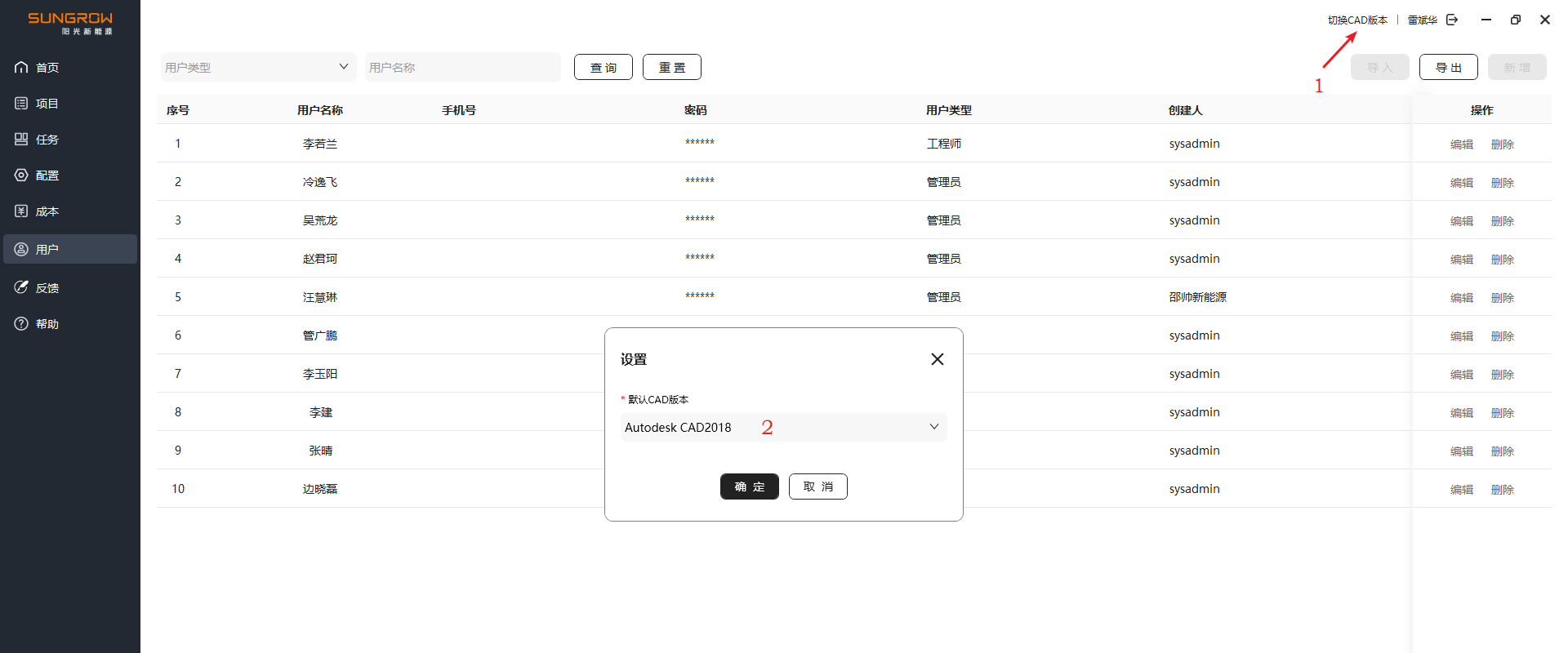 - 管理员用户:管理员权限可以查看所有本公司用户所建项目列表以及任务列表,查看到本公司的全部用户,并增删改本公司的工程师用户,可以查看到本公司及公共桥架、线缆等参数,并支持新增参数,编辑、删除本账户创建的参数。