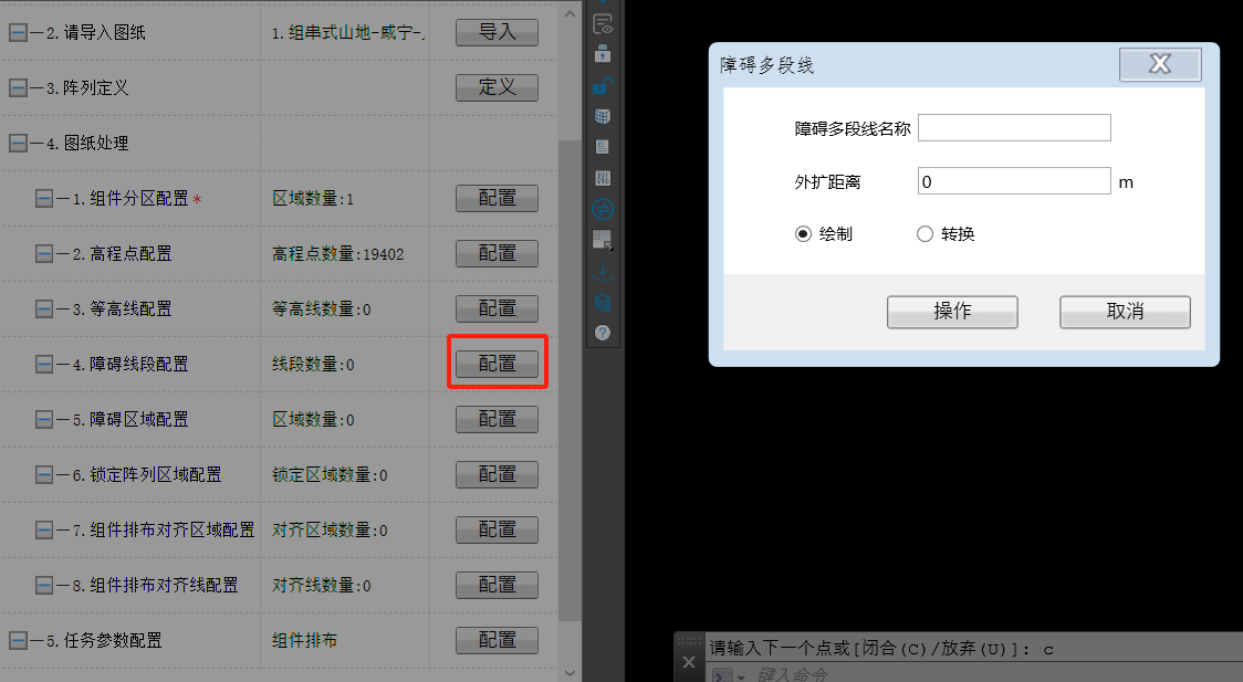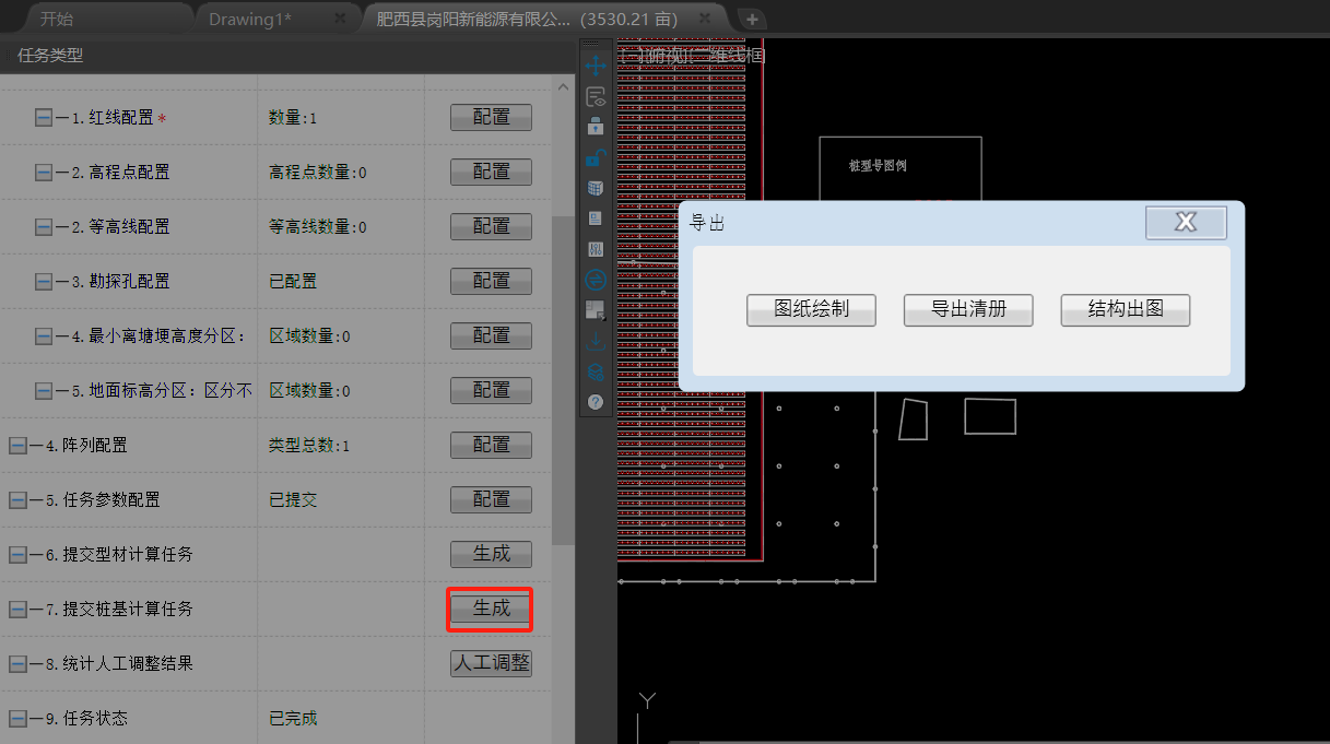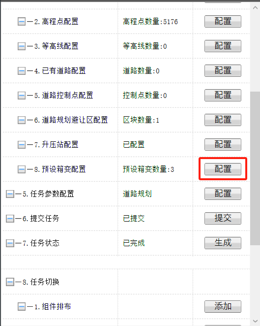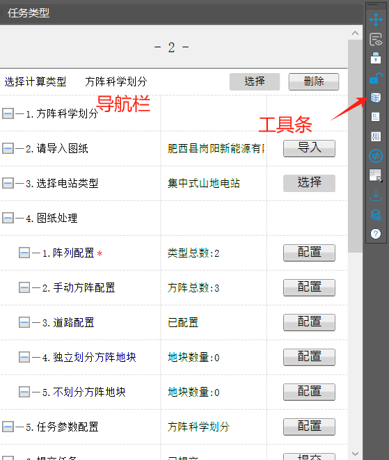 - 导航栏的主要作用为任务导航,无论什么任务,按导航栏中步骤进行图纸配置,任务参数配置,提交任务及生成结果。