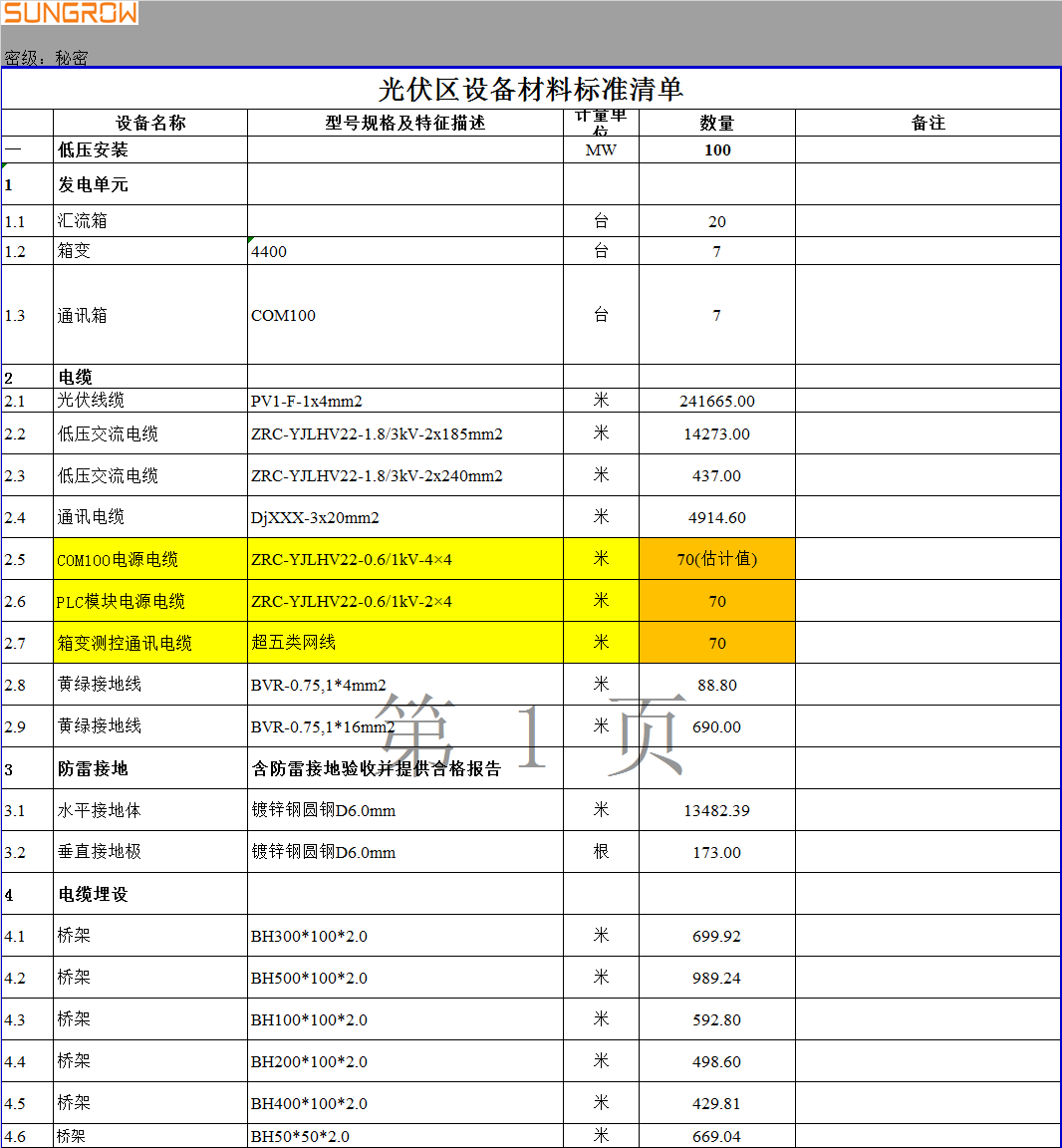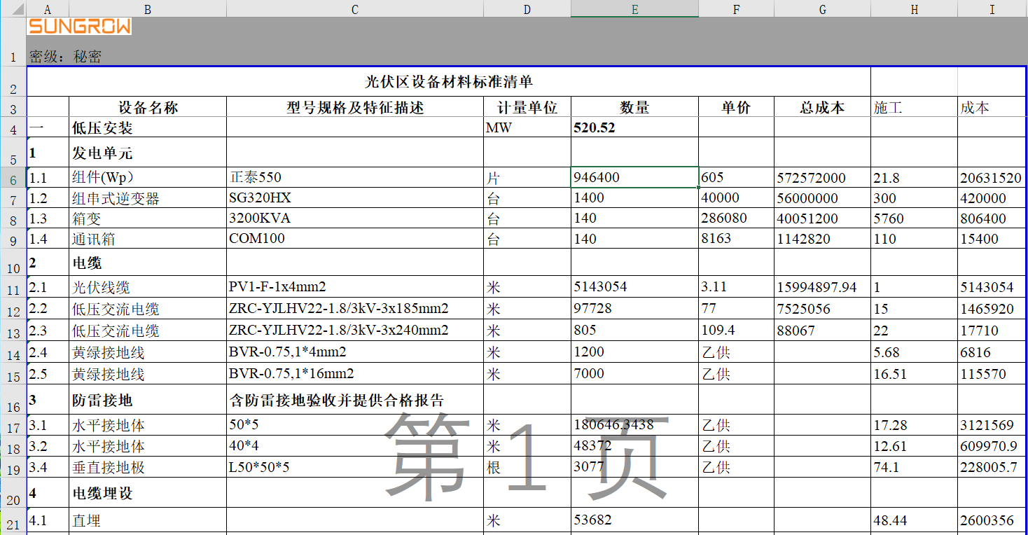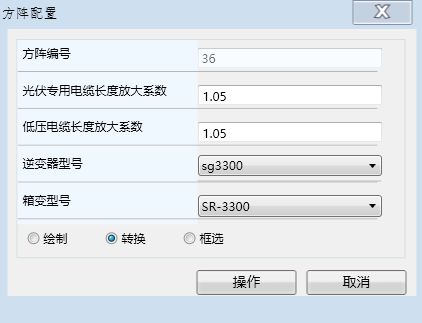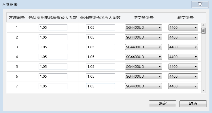 :可快速修改每个方阵的逆变器、箱变规格、电缆放大系数;