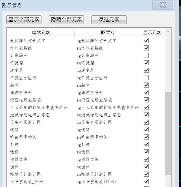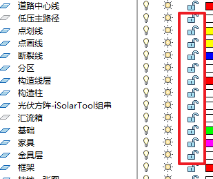 :快速对软件生成元素进行管理。仅能对iSolarTool软件所生成的众多元素进行管理。通过勾选相应的元素,来展示或隐藏。注意:当前仅对未锁定的元素进行管理,当元素被锁定(指iSolarTool的锁定