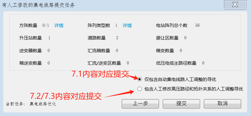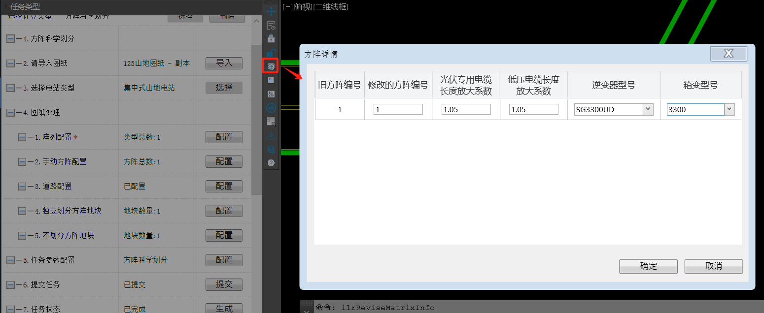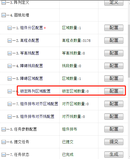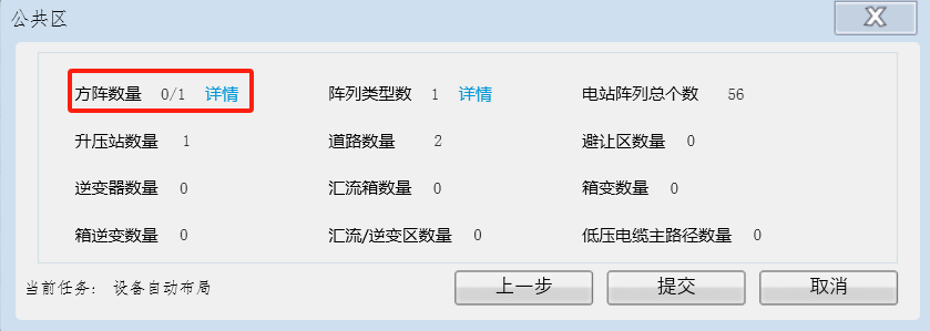 解决方案:同时解锁方阵#1的包络线、汇流区/逆变区包络线、箱变/箱逆变、汇流箱/逆变器,即将所有#1属性的设备全部解锁,然后再重新配置方阵包络线,配置好后,可正确提交。
