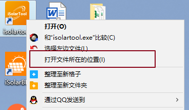 - 鼠标右击iSolarTool客户端图标,弹出操作列表,找到