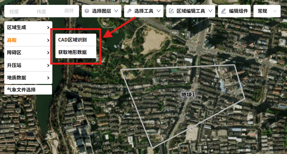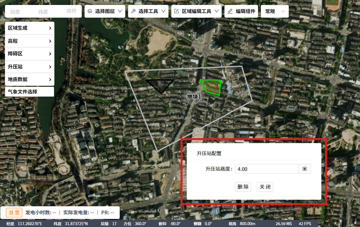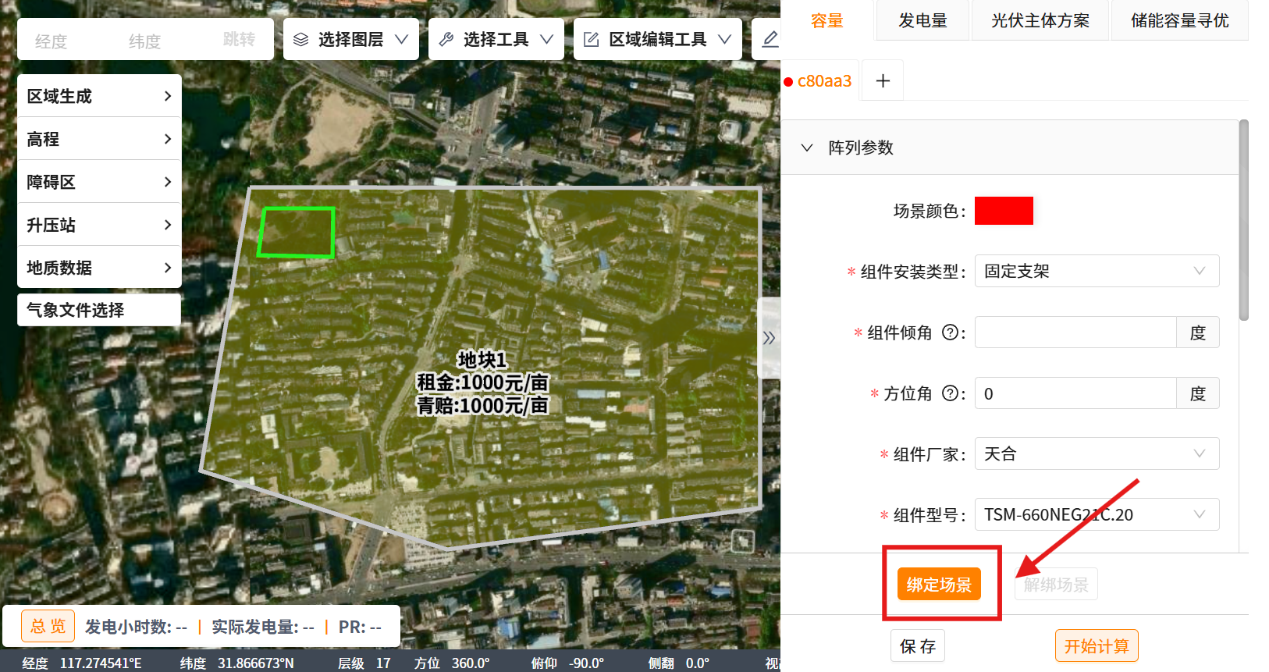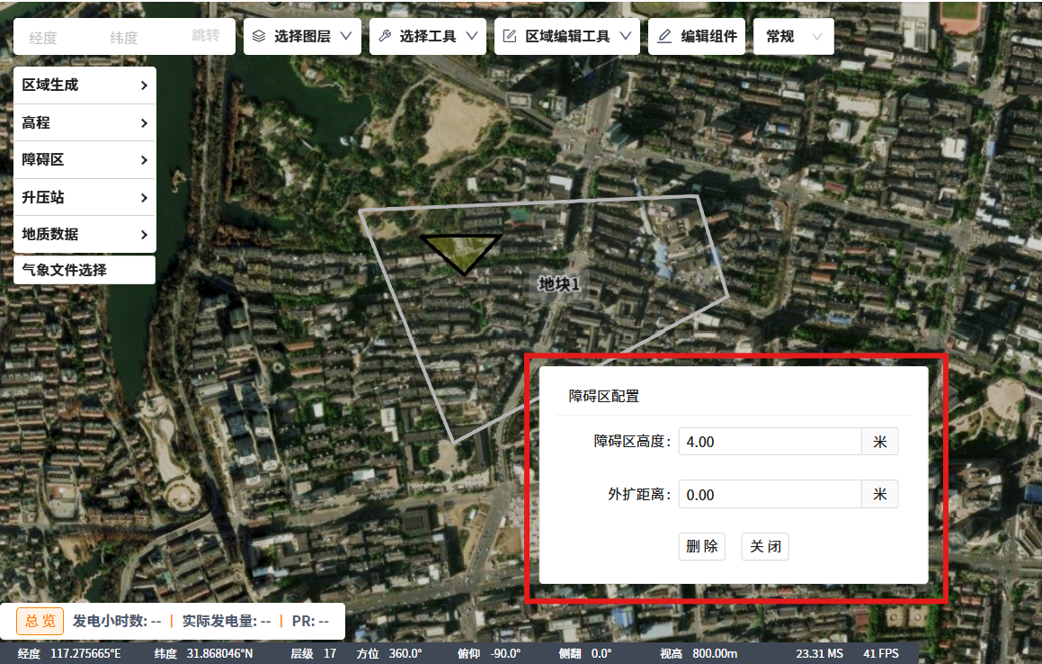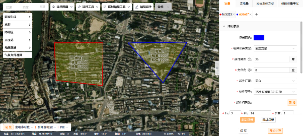 - 容量评估:导入区域红线,支持自动获取第三方高程数据或人工导入高程数据,进行组件排布评估可安装容量;