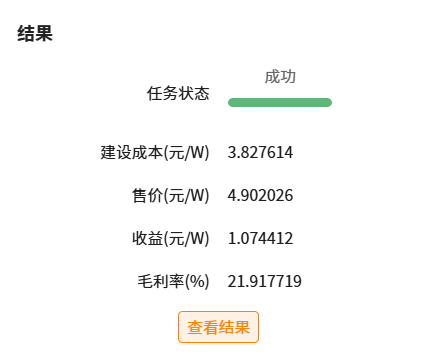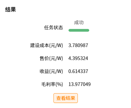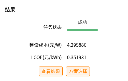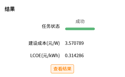 - 经济性评估:通过组件排布结果,自动调用简化方阵划分、设备布局和集电线路功能,快速计算主设备工程量清单和成本,结合评估的容量和发电量,快速计算项目的经济性,支持毛利率、LCOE 和总收益计算。