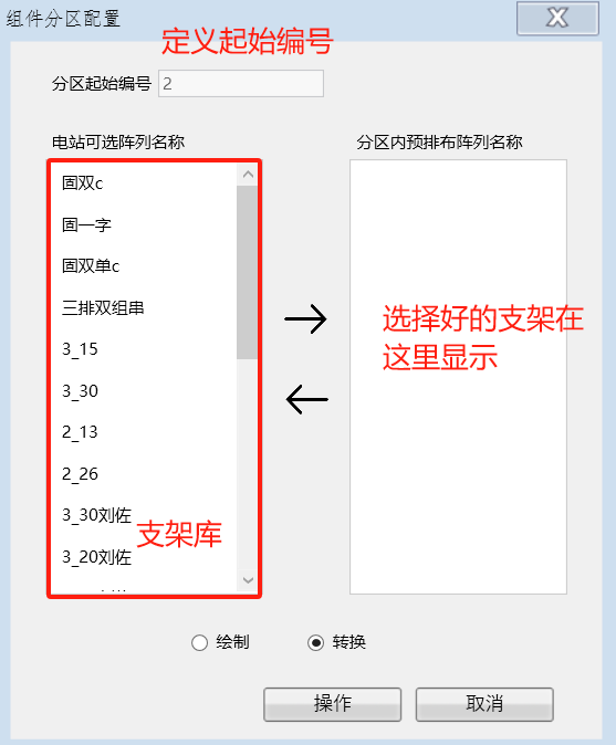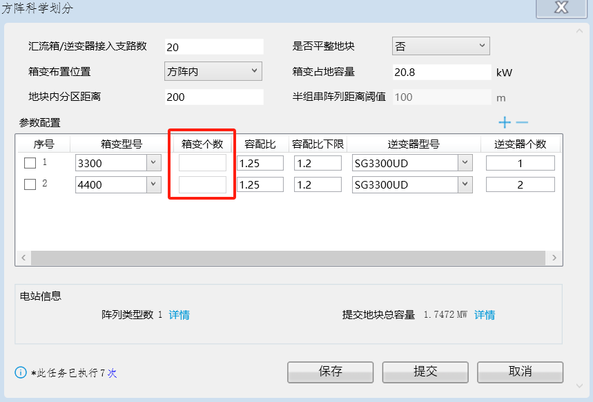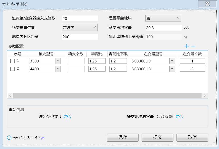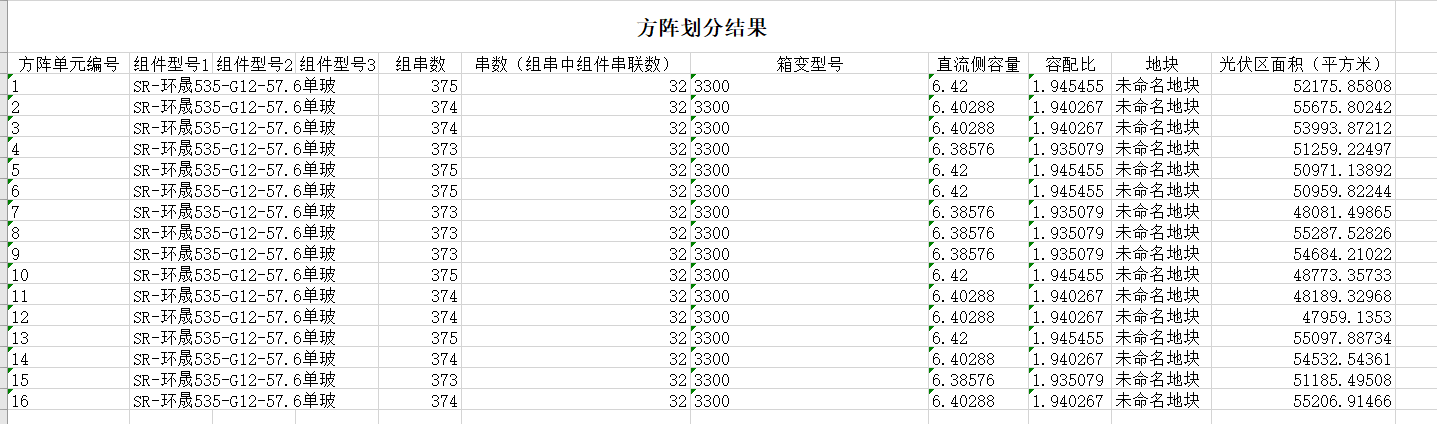 - 方阵科学划分:根据全站容量,容配比,设备规格等参数,对全站阵列进行方阵优化划分。