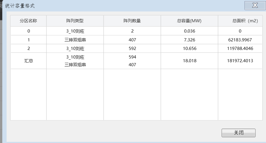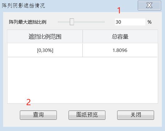 当发现很多阵列被前排阵列的阴影所遮挡,在图纸上删除了被遮挡的阵列,此时,再次打开“遮挡信息查询”界面,发现阴影遮挡比例和容量的统计并未发生变化。