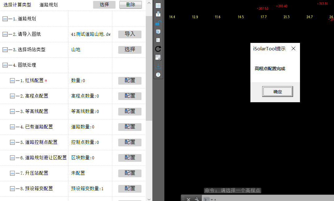 用户配置高程点,提示请选择块参照进行配置。选中了文字进行配置,没有选中块来配置,导致未能正确识别高程信息。