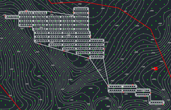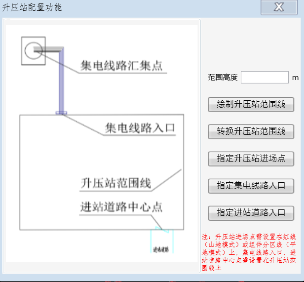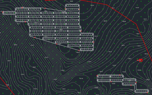 - 道路规划:支持大基地场景、山地场景的道路规划。大基地场景下基于红线范围、升压站来规划道路,并根据道路进行组件排布,输出预设的箱变位置。山地场景,基于高程信息、箱变、红线范围、升压站来规划山地道路。
