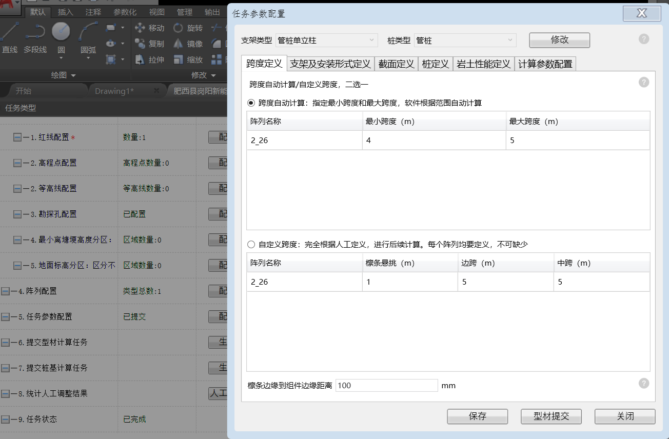 - 从方阵科学划分切换任务到设备自动布局,先提交计算,计算完成后生成图纸;