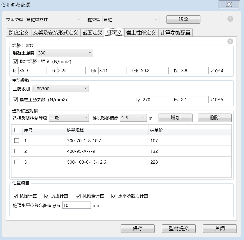 - 吊管参数:包含吊管的规格及对应的套管直径、最大根数、材料单价、施工单价。