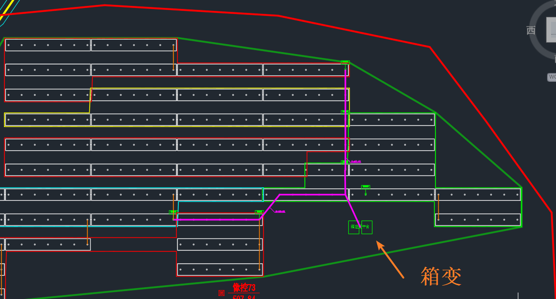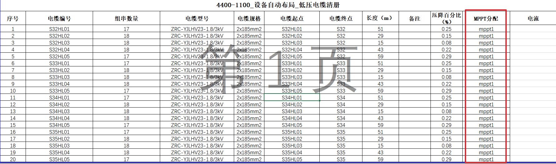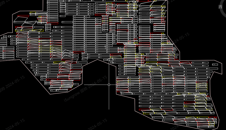 - 锁定后,重新提交计算,计算完成后,重新生成图纸,汇流箱/逆变器在人工调整后的位置上。