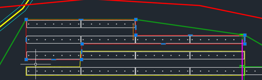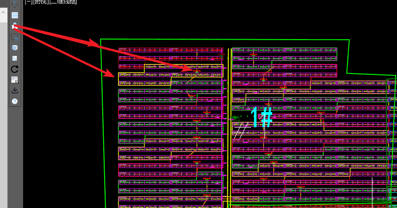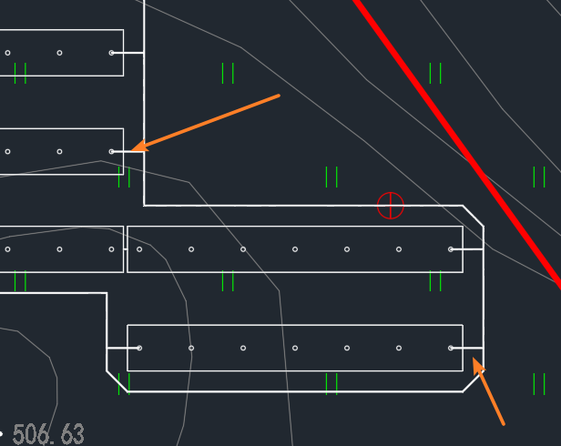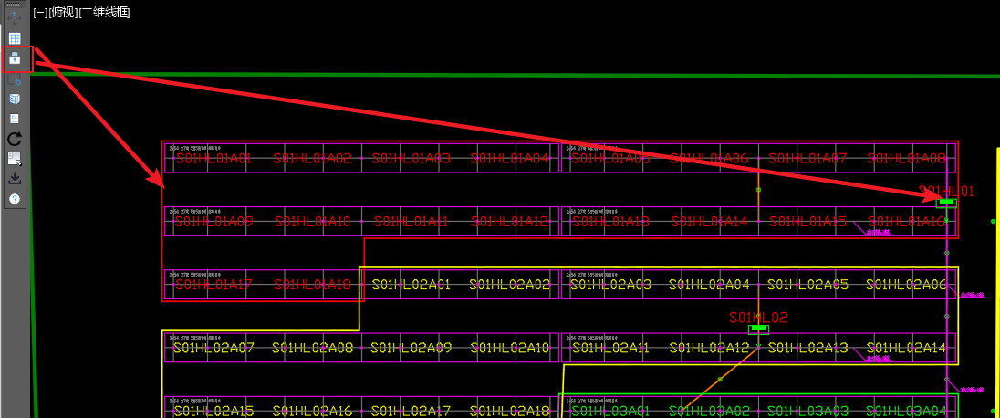 - 生成图之后,人工调整汇流箱位置,然后点击工具栏锁定按钮,同时选中方阵包络线、汇流区包络线、汇流箱三个图层,选中后按下PC上 ENTER键,完成锁定(锁定前高亮,锁定后变灰)。逆变器同理。