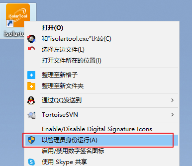 - 电脑桌面找到iSolarTool软件图标,右击,找到以管理员身份运行,点击,启动iSolarTool软件。