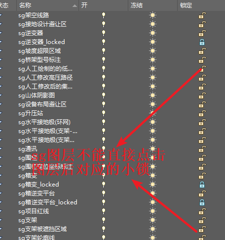 解决方案: 锁定汇流箱的同时,必须同时锁定汇流区图层,锁定的汇流箱才会生效。只锁定其中的一个图层不生效。逆变器同理。