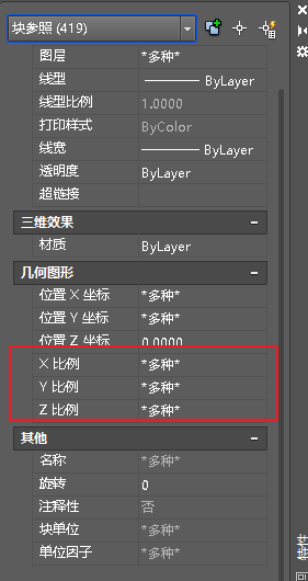 - 右击选择的对象,选择特性,修改块参照比例或者删除